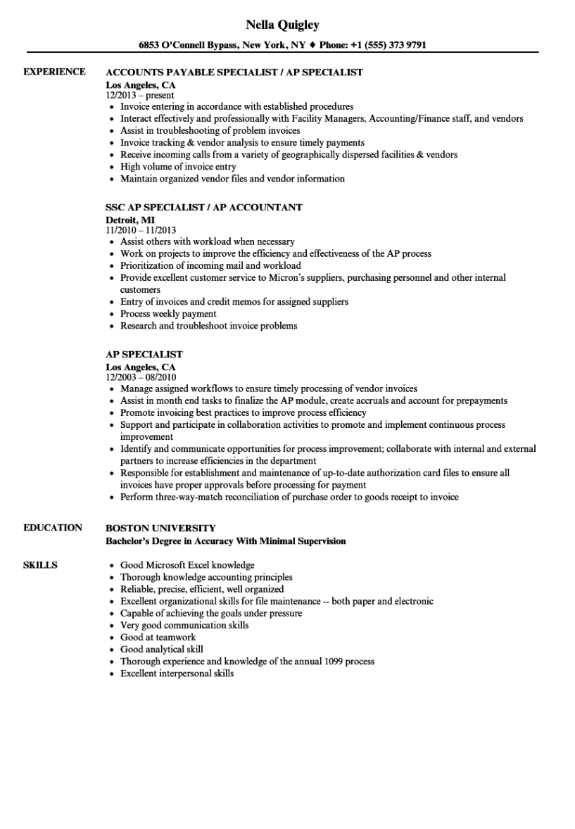 Accounts payable specialist resume template. Are you all set to land your desire task? Among one of the most important action in the task search procedure is developing a standout resume that showcases your abilities and experience. With a lot of resume themes readily available online, it can be frustrating to recognize where to begin. Yet do not stress, we’ve got you covered. In this overview, we’ll walk you with the essential elements of a terrific resume and give you with a selection of expert return to design templates to help you produce a paper that will certainly make a enduring impact.