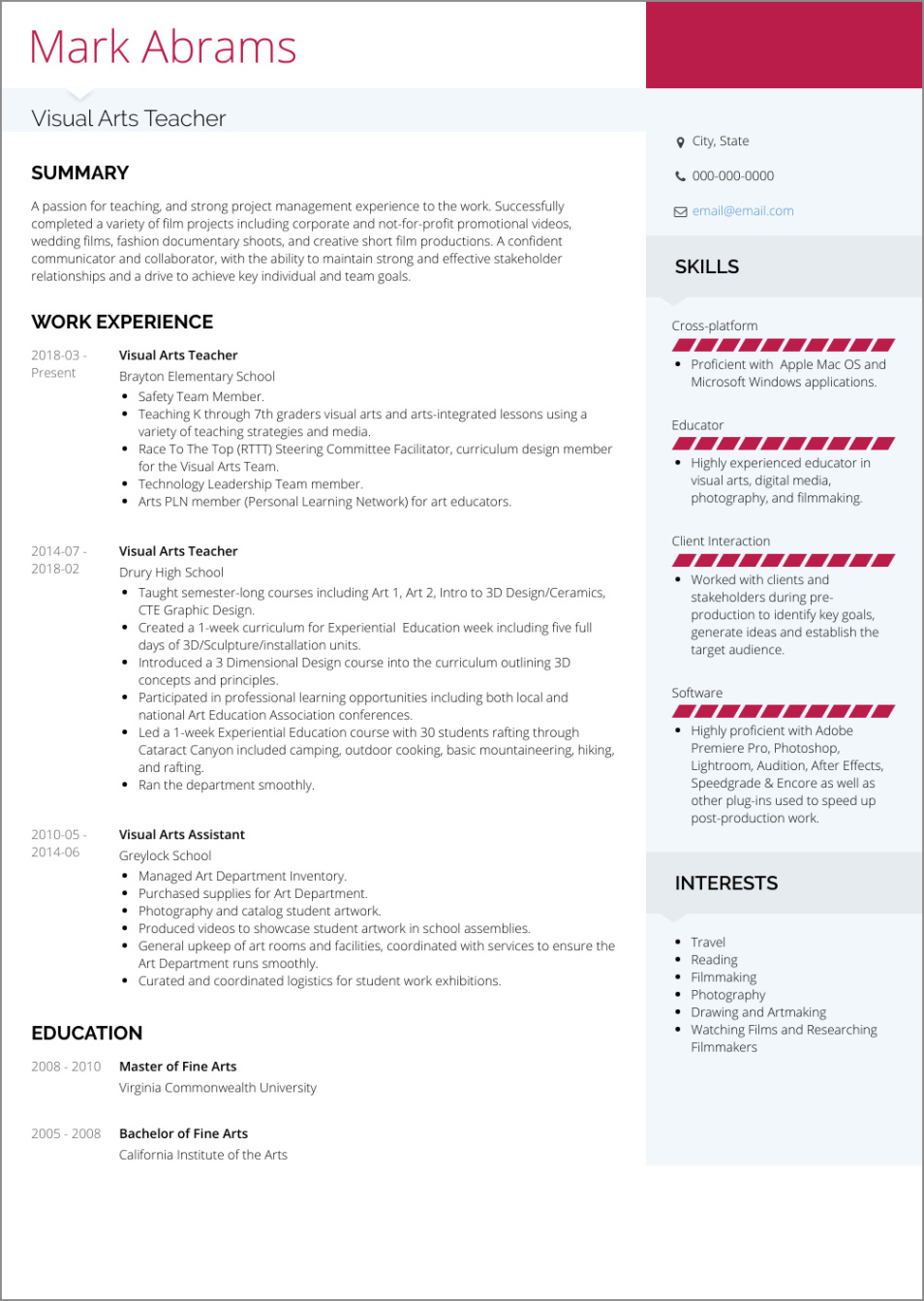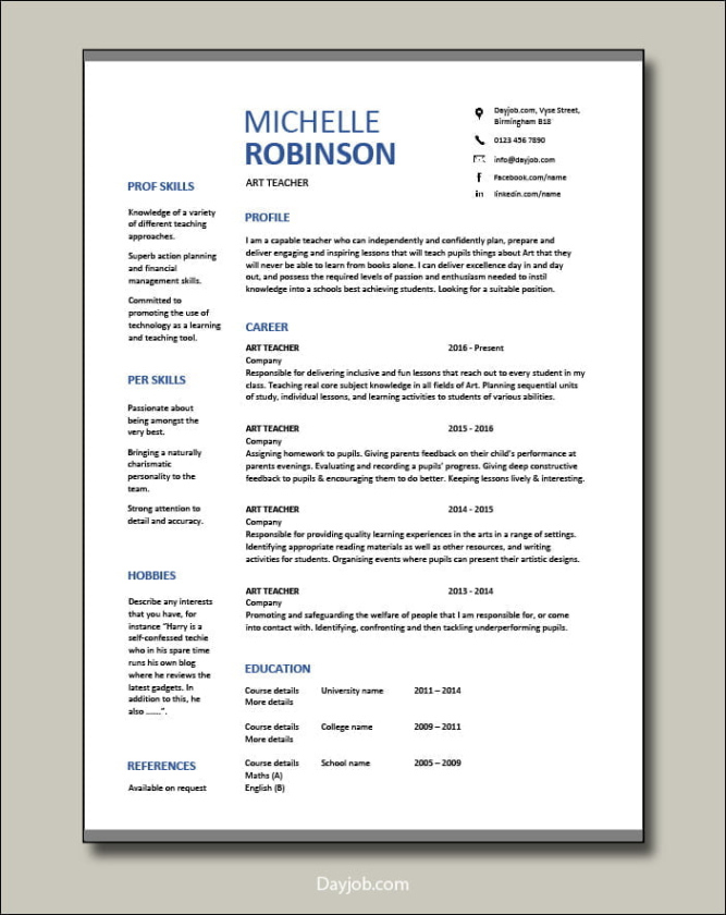 Art teacher resume template. When it concerns job hunting, a well-crafted return to is vital for making a strong impression on prospective companies. A return to is a succinct summary of your skills, experience, and credentials, designed to showcase your viability for the role you’re requesting. While developing a return to can be a daunting task, using a resume template can greatly streamline the process and assist you stand apart from the competition.