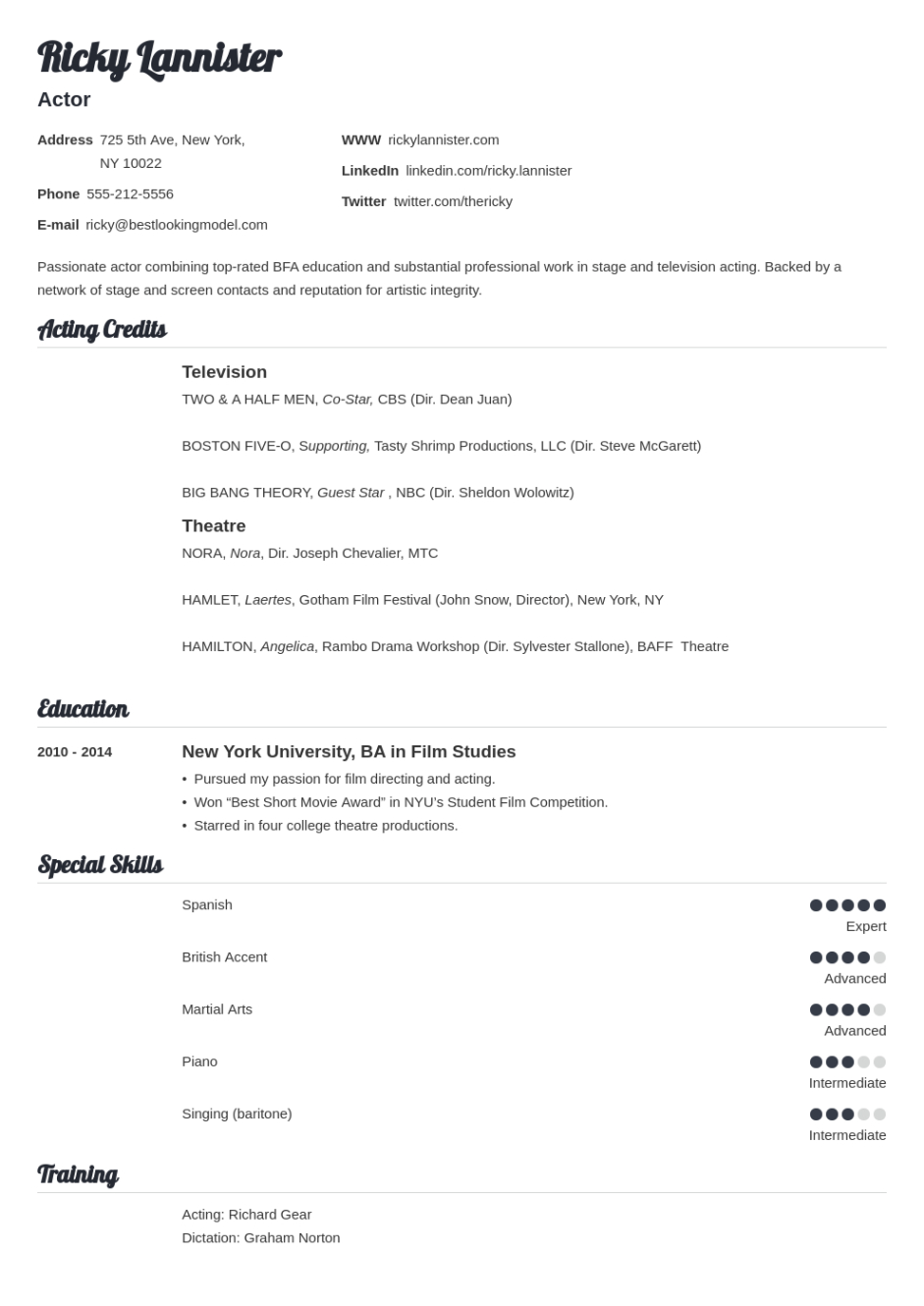 Audition beginner actor resume template. Are you all set to land your dream task? Among the most important steps in the job search process is creating a standout resume that showcases your abilities and experience. With so many return to design templates offered online, it can be frustrating to know where to start. But don’t stress, we’ve obtained you covered. In this guide, we’ll stroll you through the essential elements of a great resume and offer you with a choice of specialist resume design templates to assist you develop a document that will make a long-term impression.