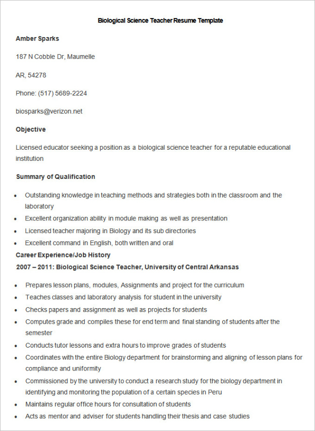 Biology teacher resume template. In the competitive globe of task hunting, your resume is frequently the first impression you make on a possible company. Having a well-organized, professional resume is critical to standing out from the crowd. One reliable way to ensure your resume stands out of recruiters is by using a resume template. These pre-designed styles provide framework, design, and functionality, making it much easier for job hunters to develop a polished document that highlights their skills and experience.