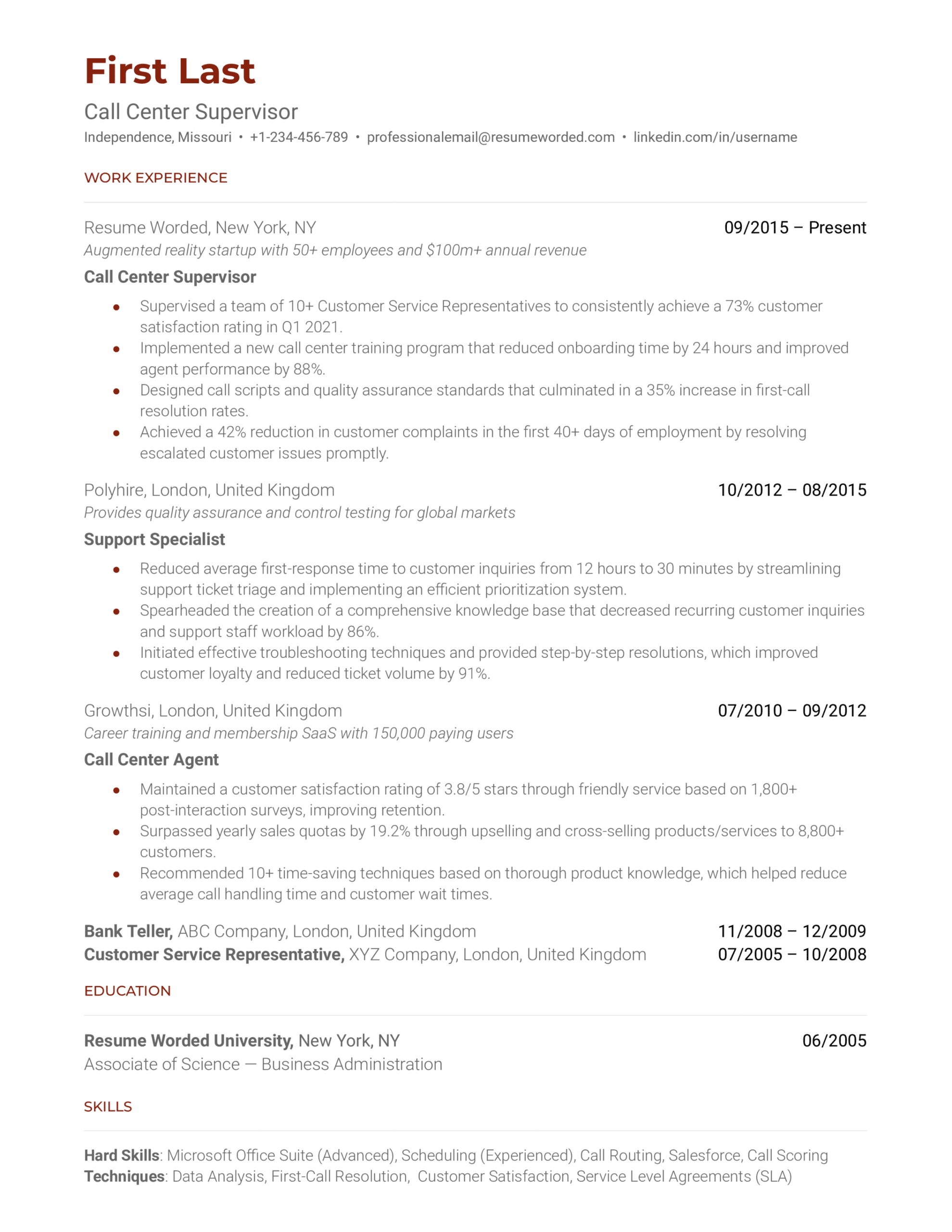 Call center manager resume template. In the competitive world of task searching, your resume is often the impression you make on a potential employer. Having a well-organized, professional return to is crucial to attracting attention from the crowd. One effective method to ensure your resume stands out of employers is by using a resume template. These pre-designed layouts offer framework, style, and capability, making it easier for job candidates to create a polished file that highlights their abilities and experience.