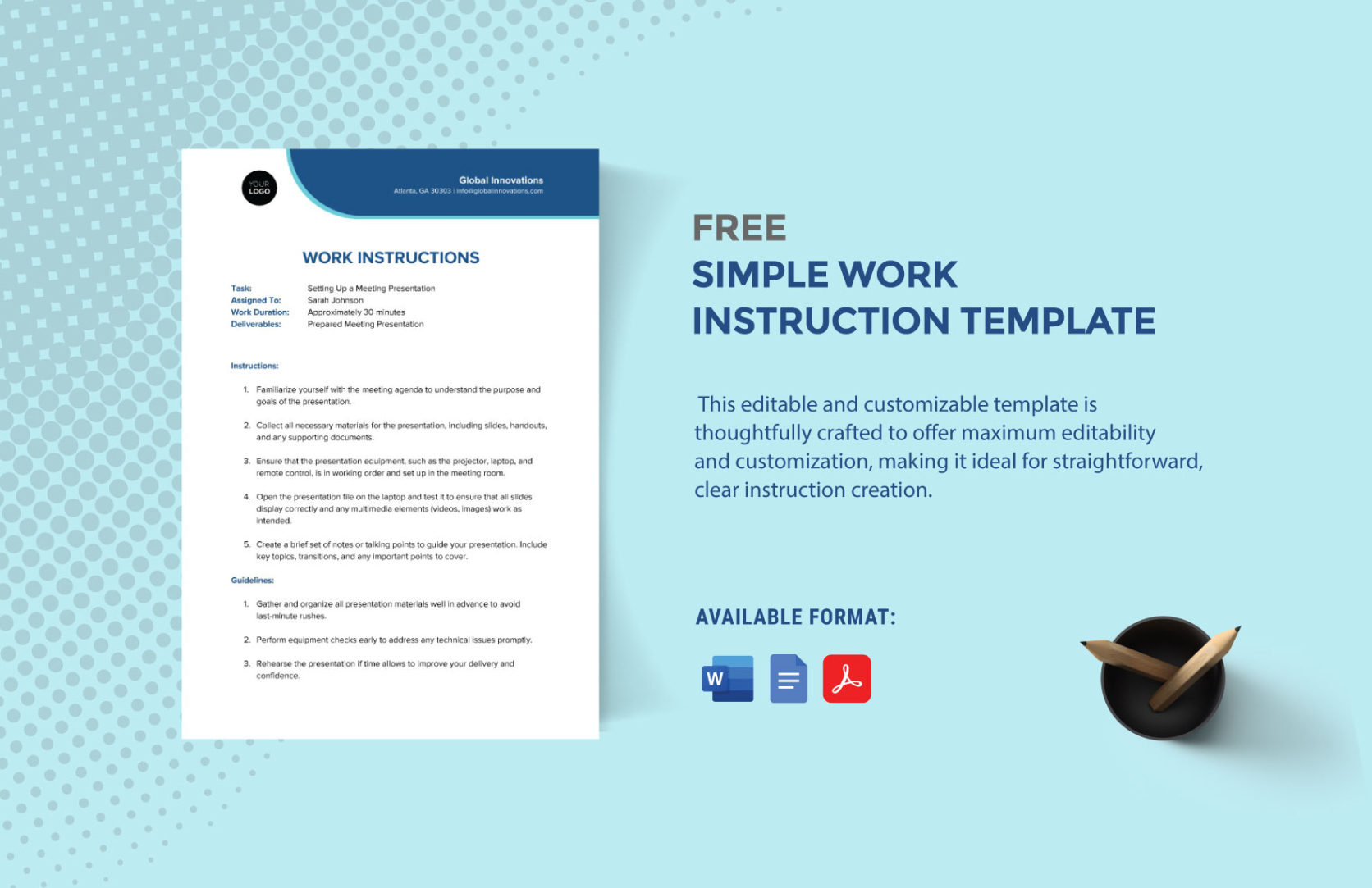 Using an instruction template also promotes consistency. When everyone adheres to the same instructions, it ensures that tasks are performed consistently across the board. This is especially important in group environments where consistency is essential for attaining desired outcomes. Consistency also helps lower errors and boosts the overall quality of work.