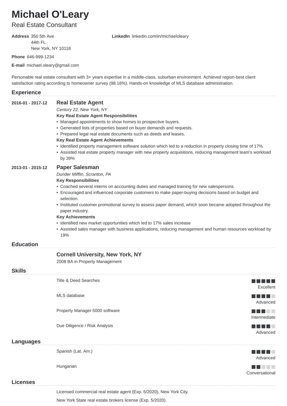 Commercial real estate resume template. When it concerns job hunting, a well-crafted return to is essential for making a strong first impression on prospective companies. A return to is a succinct summary of your abilities, experience, and qualifications, made to showcase your suitability for the function you’re making an application for. While creating a return to can be a complicated job, utilizing a resume template can substantially simplify the process and help you stand apart from the competition.