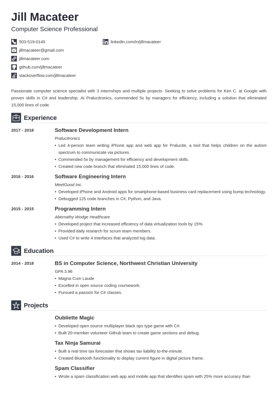 Computer science graduate resume template. When it concerns task searching, a well-crafted return to is important for making a solid impression on possible companies. A return to is a succinct recap of your abilities, experience, and qualifications, made to display your suitability for the role you’re making an application for. While creating a resume can be a overwhelming task, making use of a resume template can greatly streamline the procedure and assist you stand apart from the competitors.