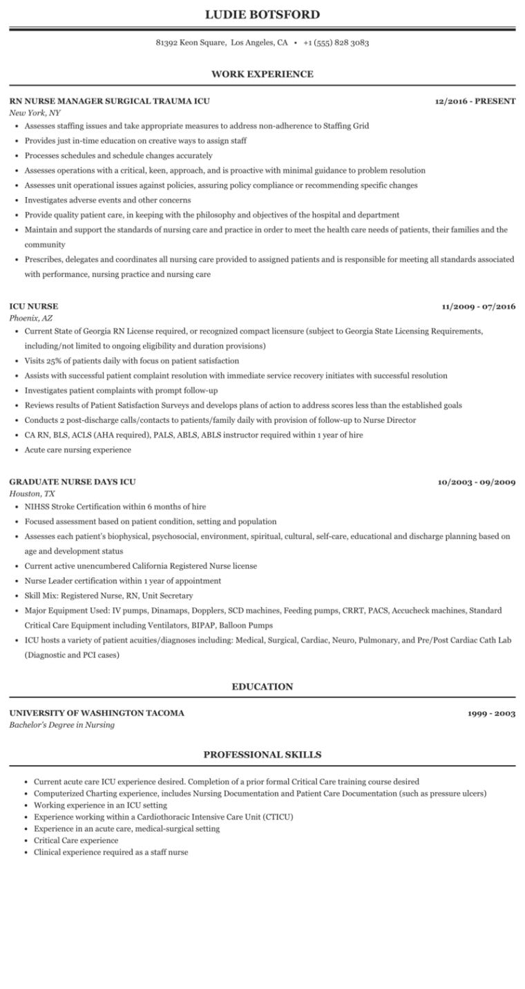 Critical care nurse resume template. When it comes to work searching, a well-crafted resume is necessary for making a strong first impression on prospective companies. A return to is a concise recap of your abilities, experience, and certifications, made to showcase your viability for the duty you’re obtaining. While creating a resume can be a daunting task, making use of a resume template can greatly simplify the process and aid you stand out from the competitors.