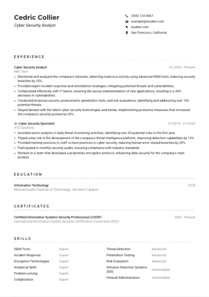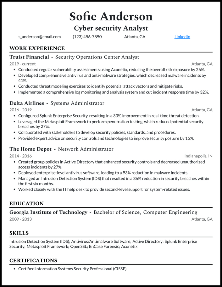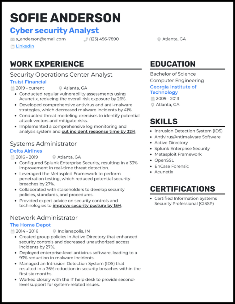 Cyber security analyst resume template. In today’s very affordable task market, a well-crafted resume can make all the difference in safeguarding an meeting. Return to layouts provide a easy, yet highly efficient way to guarantee your return to stands out. These pre-designed styles give structure and design, permitting task hunters to focus on showcasing their certifications instead of worrying about design and formatting.