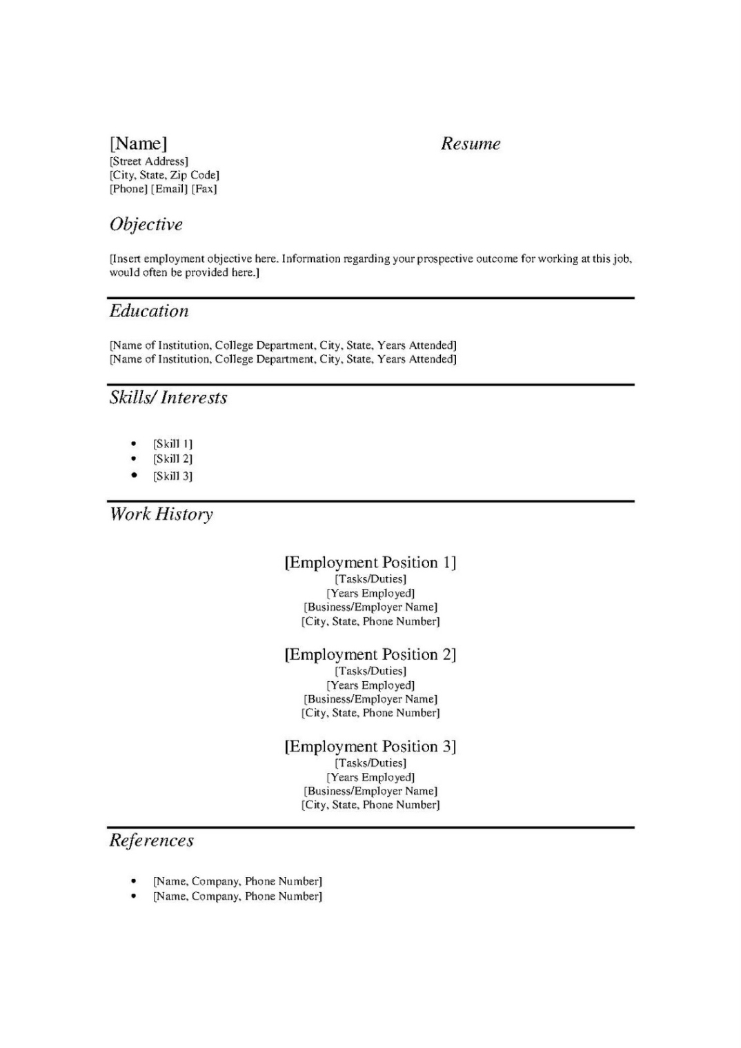 Editable Easy Fill In Resume Template Word Sample