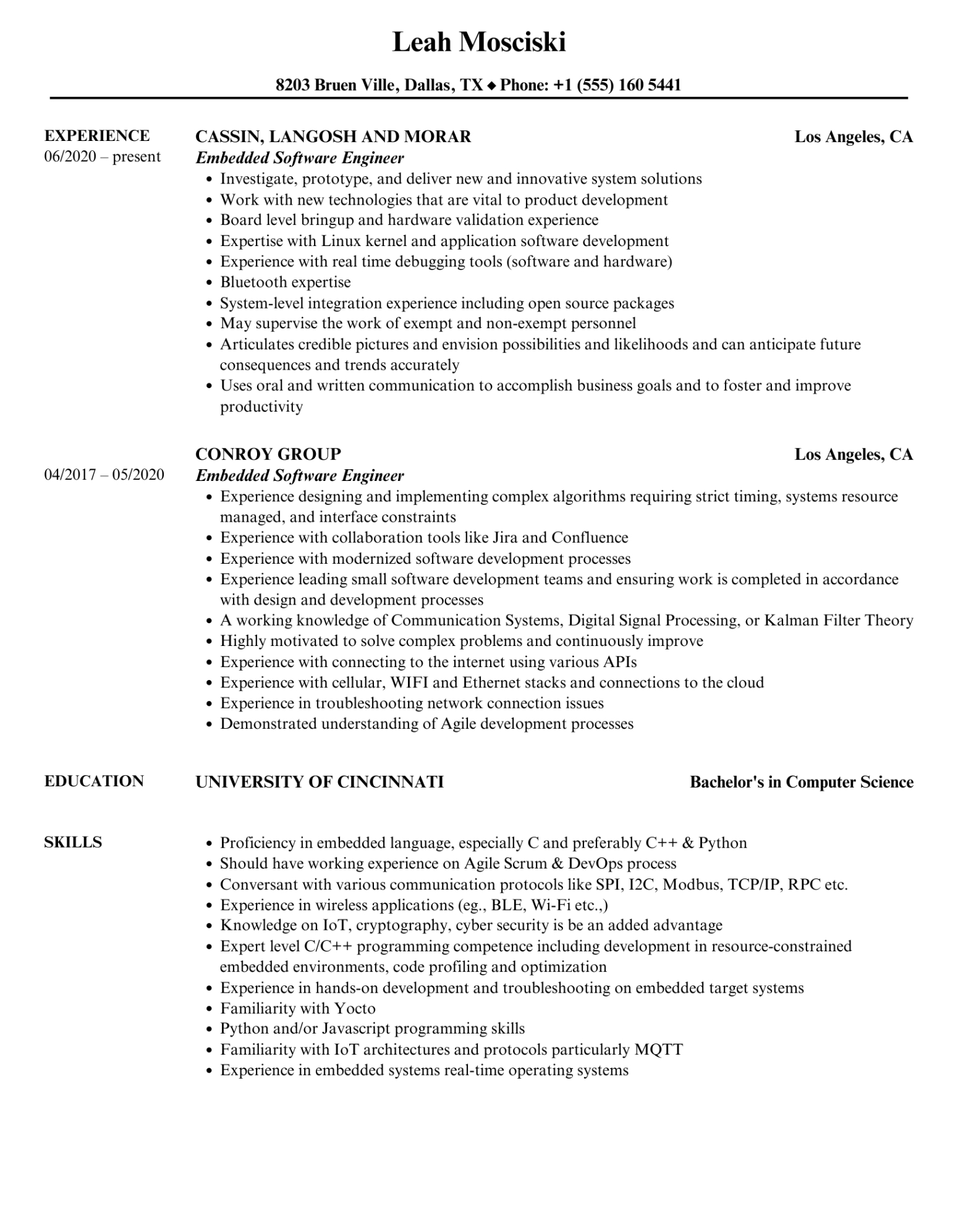 Embedded software engineer resume template. Crafting an remarkable return to can be a overwhelming job, especially if you’re starting from scratch. Luckily, there are a myriad of cost-free return to templates available online to streamline the process. These templates provide a selection of styles and layouts, enabling you to showcase your abilities and experience in a aesthetically appealing and specialist fashion.