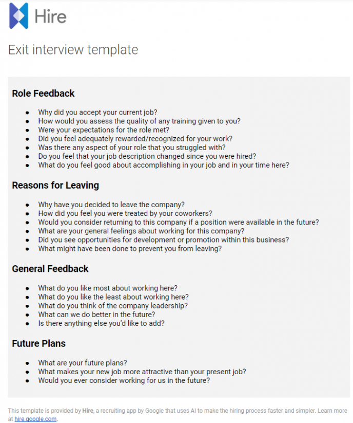 Employee exit interview questions template. In the affordable realm of recruitment, where the fight for top skill is intense, efficiency and consistency are crucial. Interview themes have emerged as a transformative device in this landscape, using a organized method to carrying out meetings that profits both employers and candidates. These design templates not just streamline the hiring process yet likewise make certain a reasonable and extensive examination of each prospect. By giving a constant framework, meeting design templates can elevate the top quality of the employing procedure and contribute to much better decision-making.