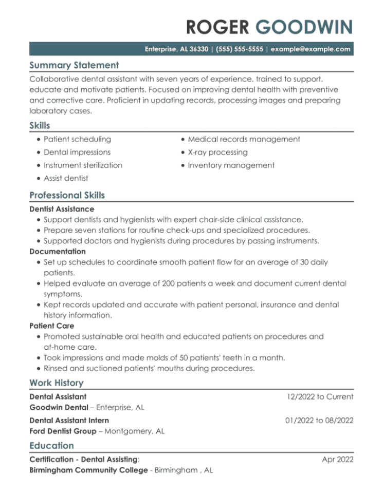 Entry level dental assistant resume template. Are you prepared to land your desire work? Among one of the most crucial steps in the work search procedure is producing a standout resume that showcases your abilities and experience. With a lot of resume design templates readily available online, it can be frustrating to recognize where to begin. However do not stress, we’ve obtained you covered. In this guide, we’ll stroll you via the essential elements of a excellent return to and give you with a selection of specialist resume templates to assist you develop a paper that will certainly make a long-term perception.