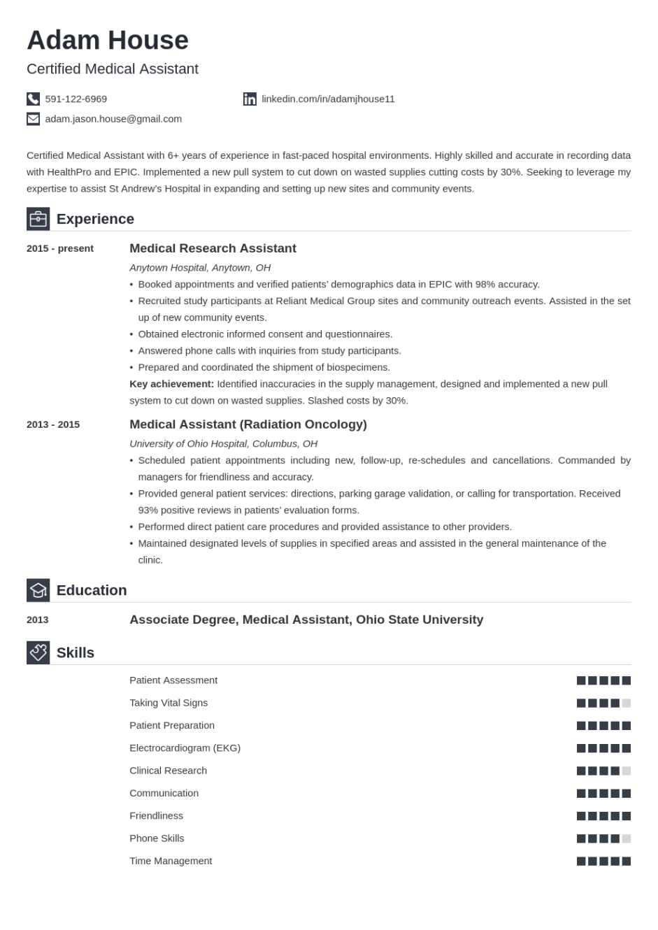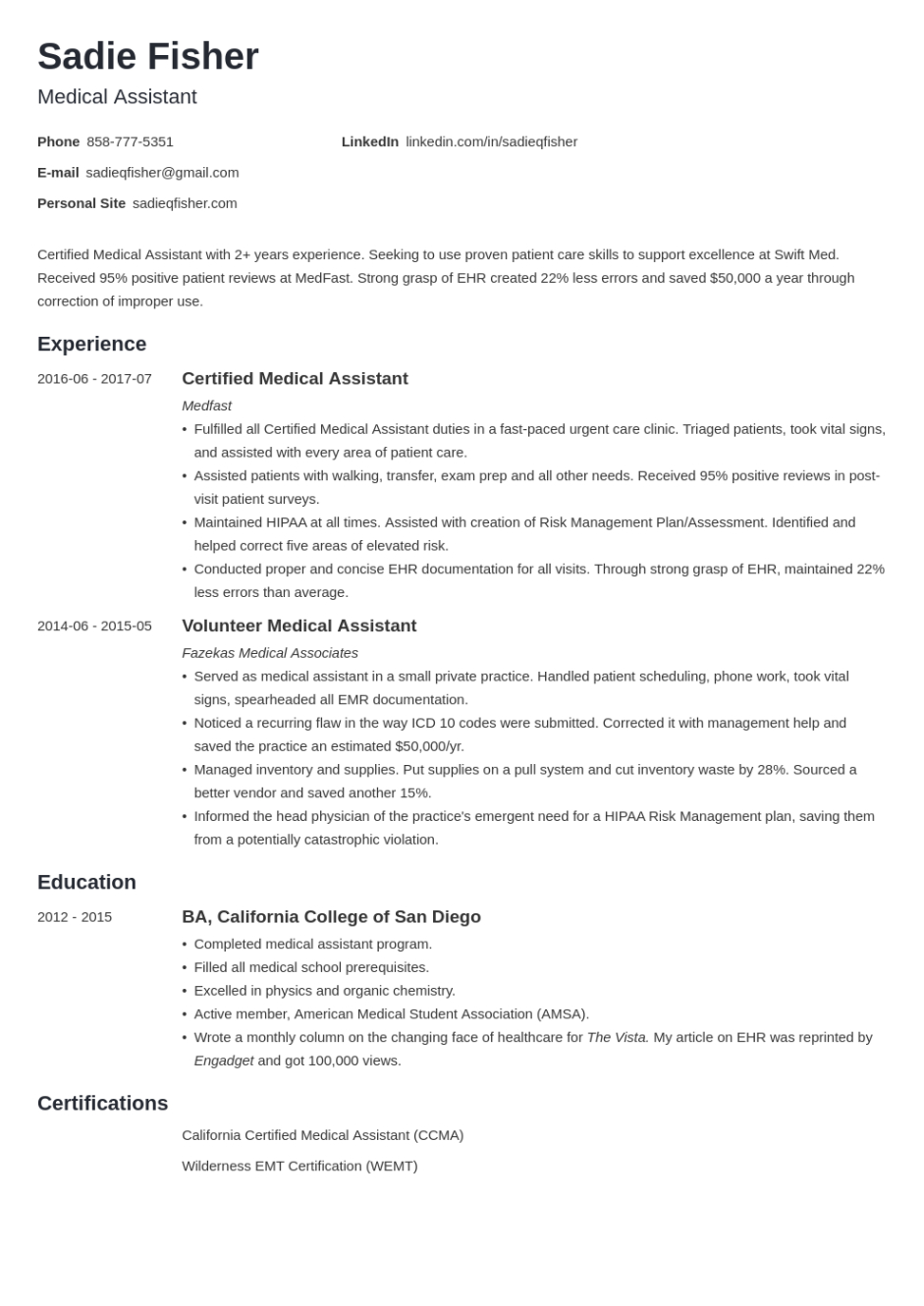 Entry level medical assistant resume template. Crafting an remarkable resume can be a challenging task, specifically if you’re going back to square one. Fortunately, there are a plethora of complimentary resume design templates offered online to streamline the procedure. These layouts use a range of designs and layouts, permitting you to display your skills and experience in a visually enticing and professional manner.