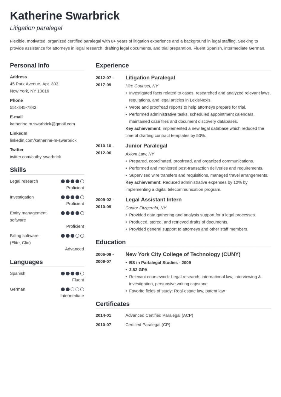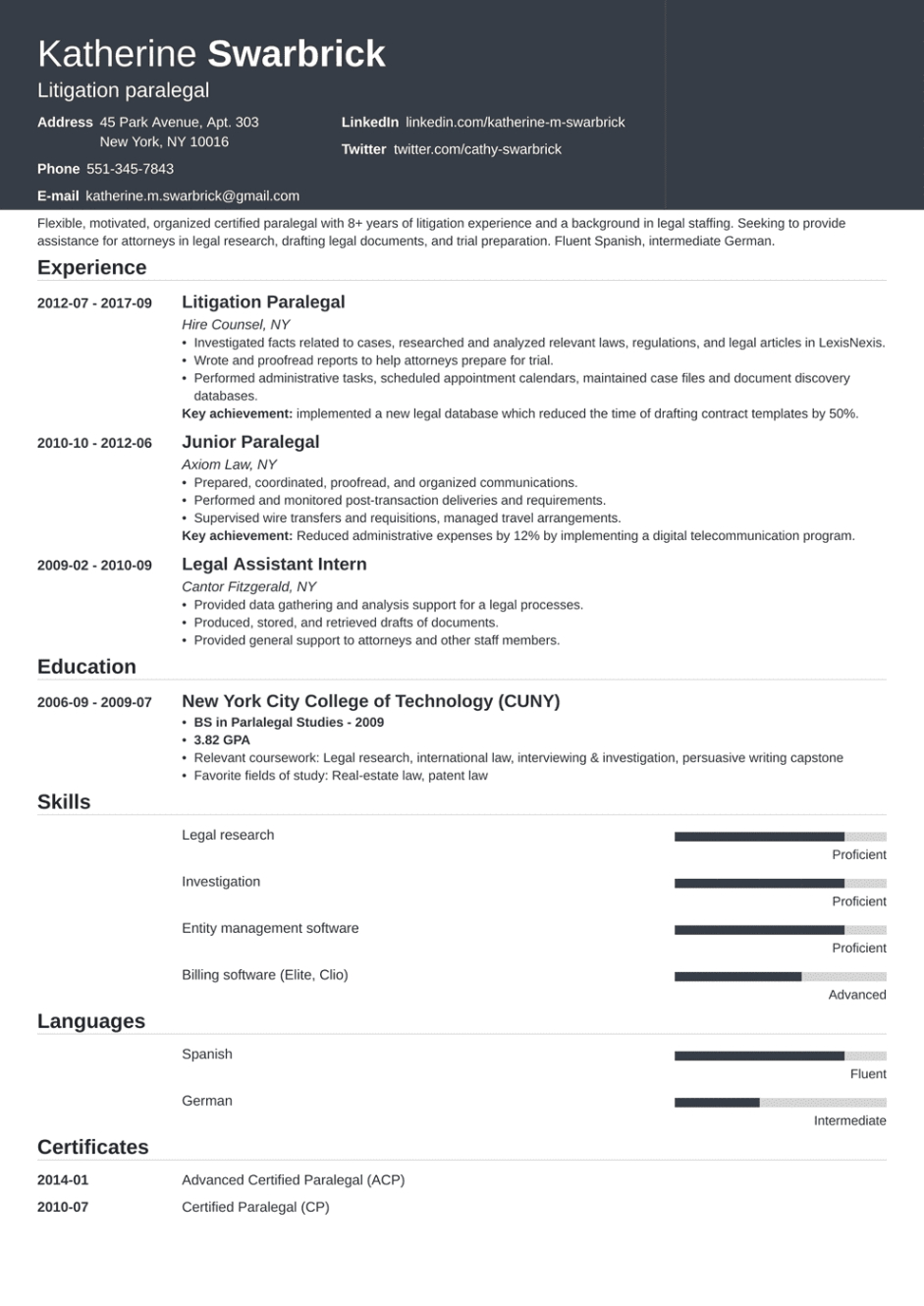 Entry level paralegal resume template. Are you all set to land your desire job? One of the most vital action in the task search procedure is developing a standout return to that showcases your abilities and experience. With a lot of resume themes offered online, it can be overwhelming to understand where to start. Yet don’t worry, we’ve got you covered. In this overview, we’ll walk you with the essential elements of a fantastic resume and supply you with a option of expert resume themes to aid you develop a paper that will certainly make a long-term perception.