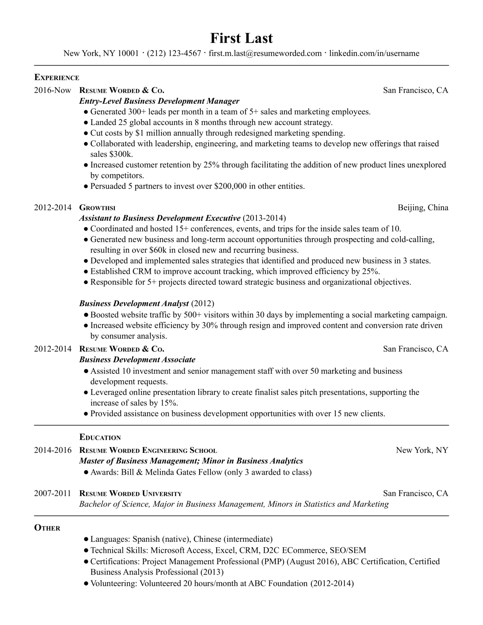 List of Entry Level Sales Resume Template