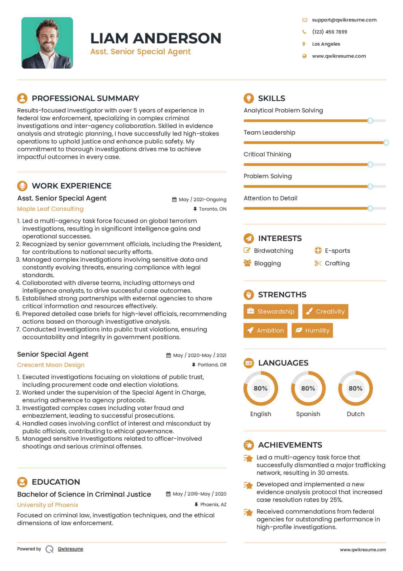Fbi special agent resume template. In the competitive world of work hunting, your return to is usually the first impression you make on a prospective company. Having a efficient, professional return to is critical to standing out from the group. One efficient method to ensure your return to catches the eye of recruiters is by utilizing a resume template. These pre-designed styles offer structure, style, and functionality, making it less complicated for job candidates to develop a sleek document that highlights their skills and experience.
