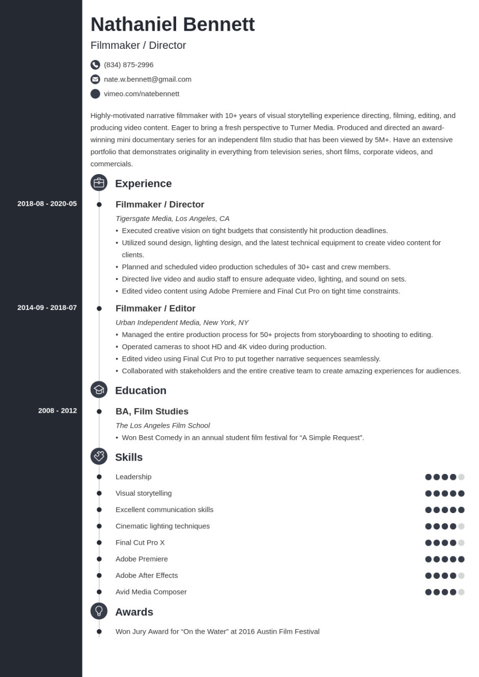 Film director resume template. In today’s extremely competitive job market, a well-crafted return to can make all the distinction in protecting an interview. Resume design templates supply a easy, yet very reliable way to ensure your resume stands apart. These pre-designed styles provide framework and design, allowing work seekers to concentrate on showcasing their certifications instead of fretting about layout and formatting.
