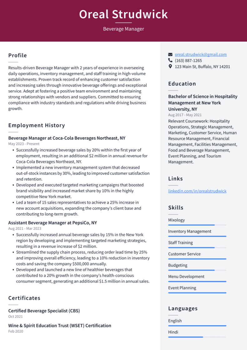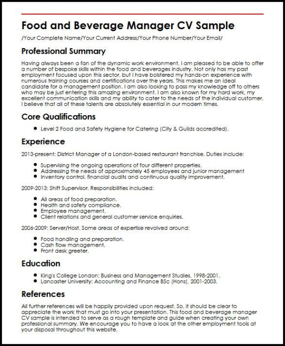 Food and beverage manager resume template. In the competitive globe of task hunting, your resume is frequently the first impression you make on a possible employer. Having a efficient, professional resume is essential to sticking out from the crowd. One effective means to guarantee your resume stands out of recruiters is by utilizing a resume template. These pre-designed layouts provide structure, style, and functionality, making it less complicated for task candidates to create a polished paper that highlights their abilities and experience.