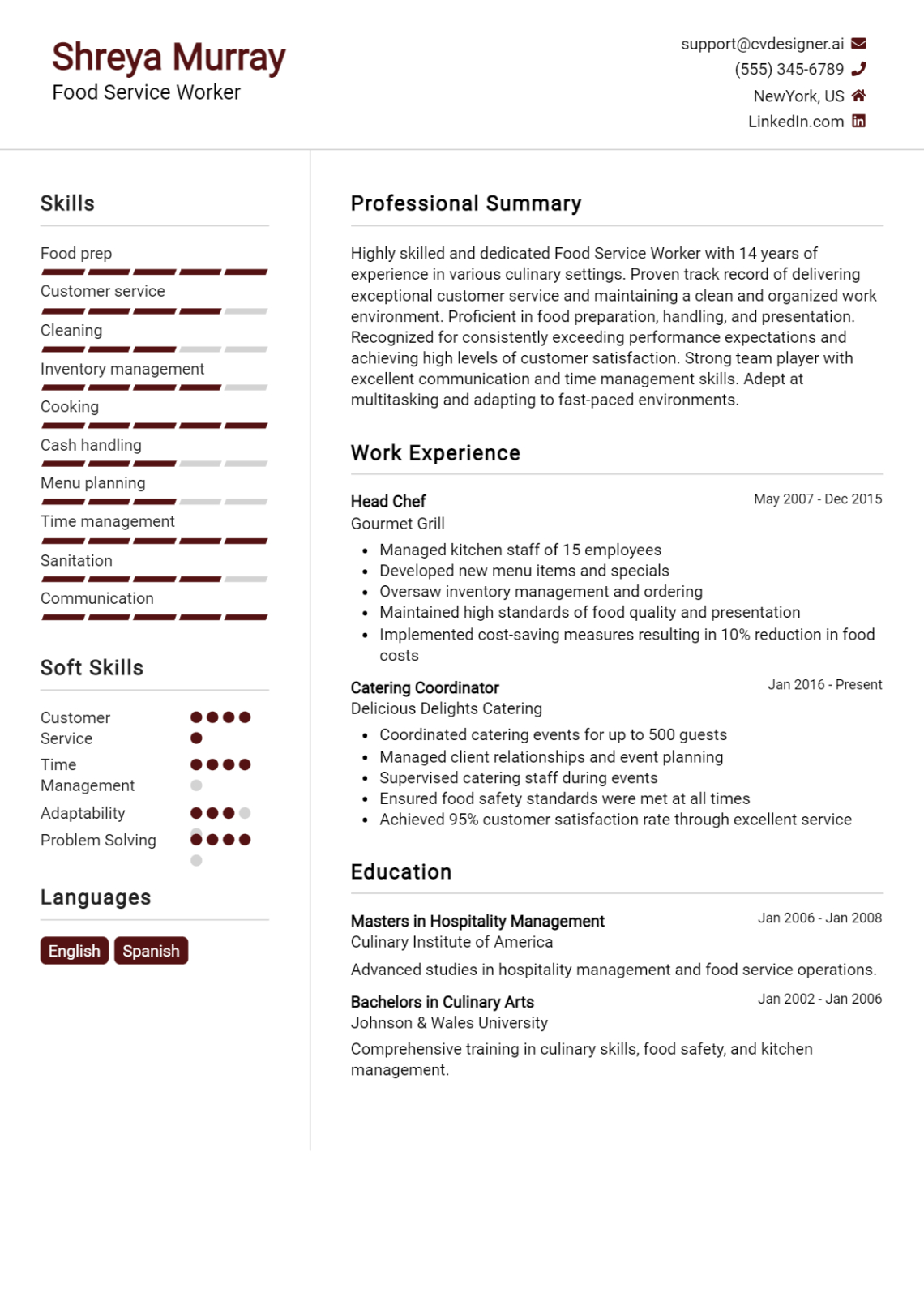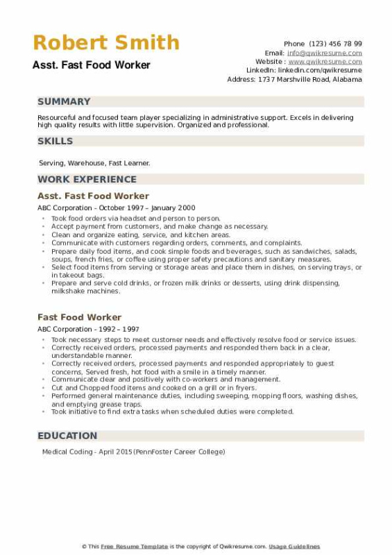 Food service worker resume template. When it concerns task hunting, a well-crafted resume is vital for making a strong impression on potential employers. A return to is a succinct summary of your skills, experience, and qualifications, made to showcase your viability for the role you’re applying for. While developing a return to can be a difficult job, making use of a resume template can greatly streamline the process and assist you attract attention from the competitors.