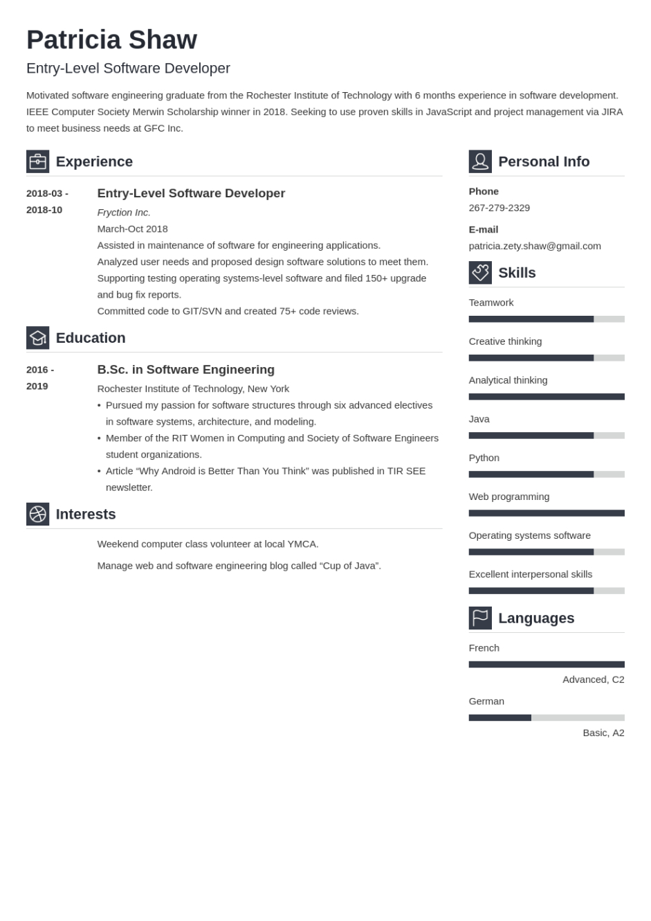Fresher Software Engineer Resume Template