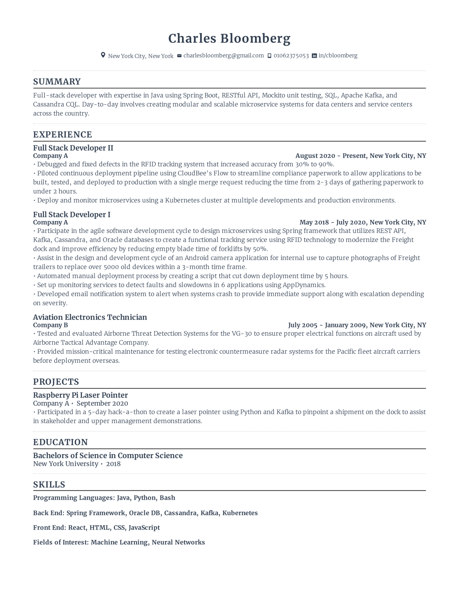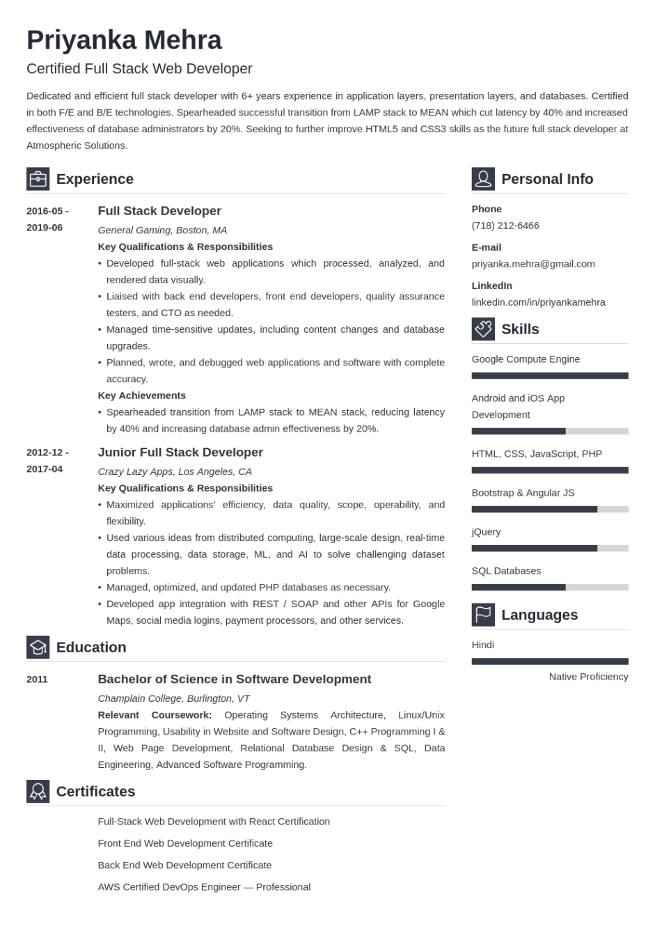 Full stack developer resume template. In today’s extremely competitive job market, a well-crafted resume can make all the difference in securing an interview. Return to templates provide a basic, yet highly efficient method to guarantee your resume attracts attention. These pre-designed formats give structure and design, allowing job seekers to focus on showcasing their qualifications as opposed to fretting about format and format.