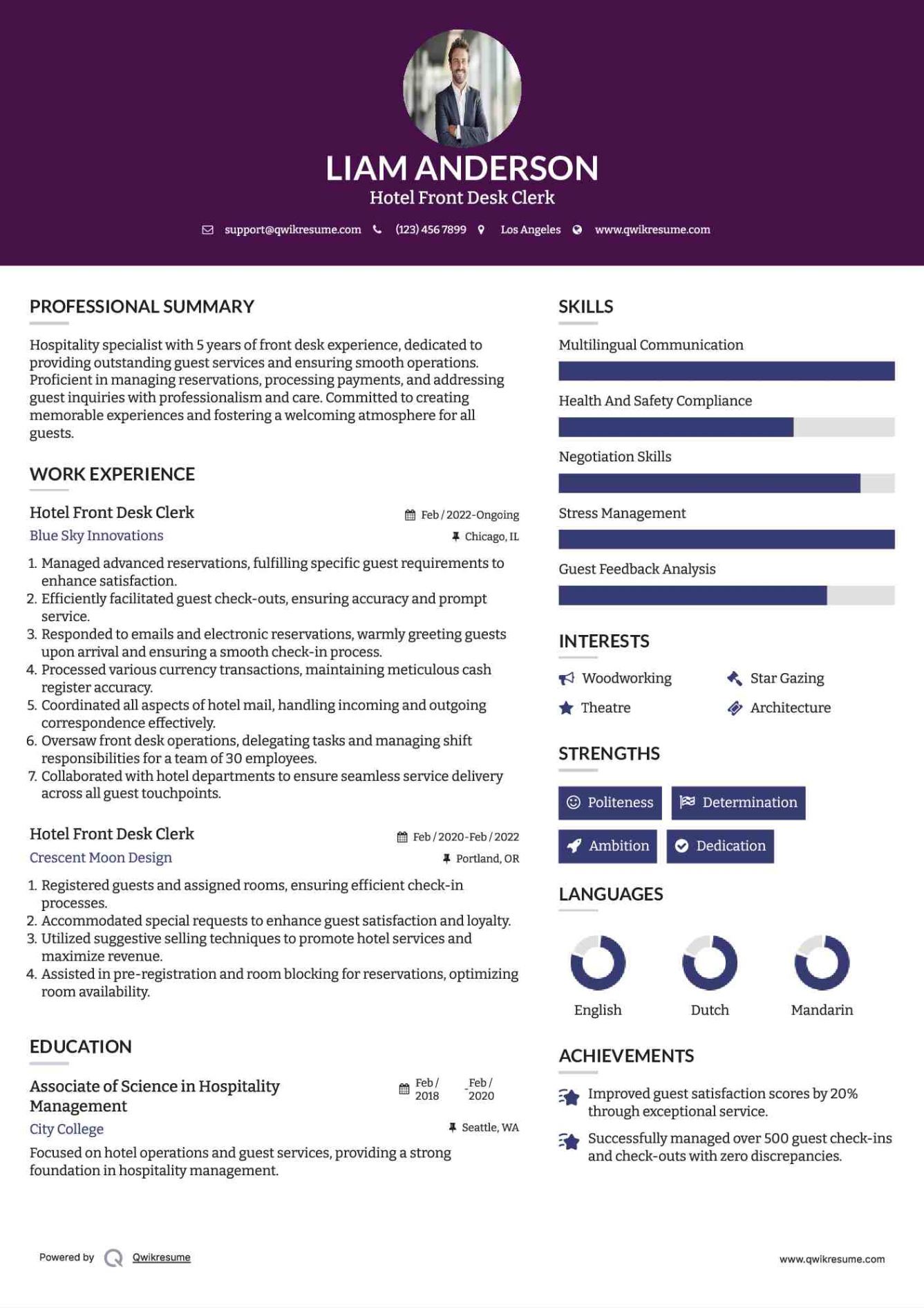 Hotel Front Desk Resume Template