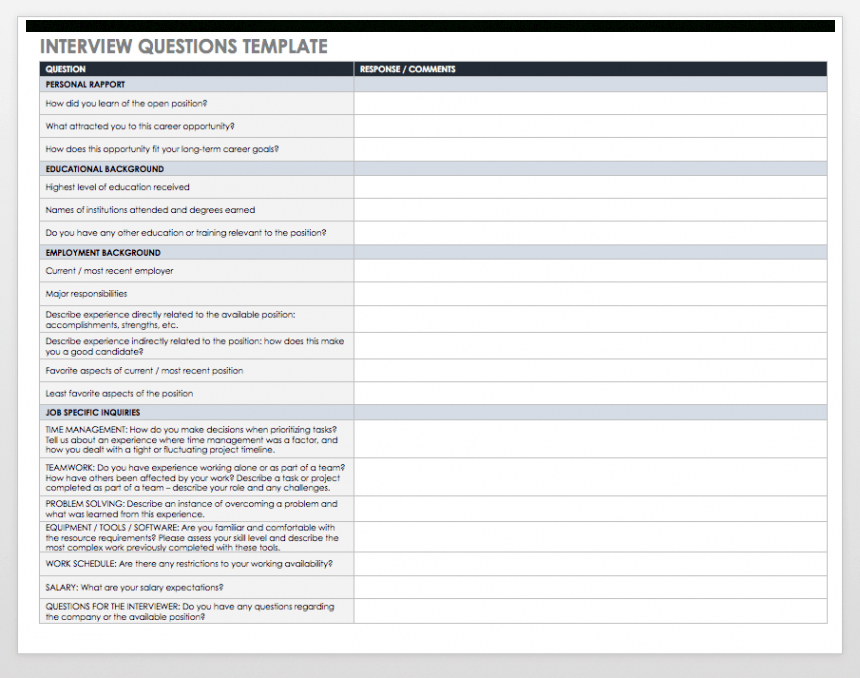 Interview templates also play a crucial role in enhancing the dependability and credibility of the hiring process. By using a standardized set of inquiries, companies can reduce the influence of job interviewer bias and subjective judgments. This uniformity aids ensure that all prospects are evaluated based on the same standards, resulting in even more accurate and fair assessments. Additionally, when several recruiters are entailed, templates aid keep a consistent technique, making it easier to combine responses and reach a agreement on the very best candidates.