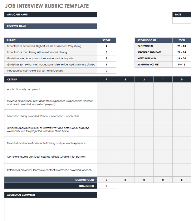 Job interview rating scale template. In today’s affordable task market, the function of meeting layouts has actually ended up being progressively pivotal for organizations striving to work with leading skill effectively and relatively. Meeting templates, structured frameworks made to assist the interview procedure, work as vital devices for both recruiters and candidates. They supply a systematic strategy that guarantees uniformity, minimizes prejudices, and boosts the overall effectiveness of the working with process. This short article delves into the value of interview themes, exploring their benefits, applications, and best methods.