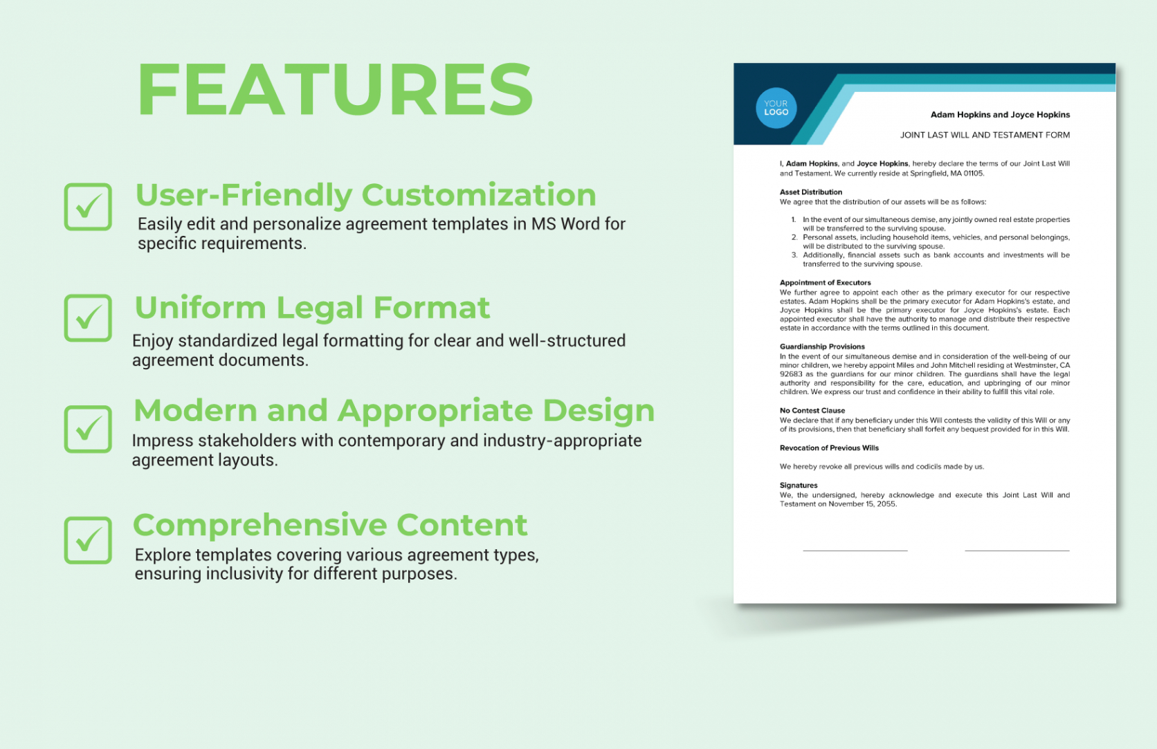 Joint last will and testament template. Developing a will is an essential step in preparing for the future, yet many people put it off. A will certainly aids detail just how one’s assets need to be dispersed and can define guardianship for any dependents, together with other crucial instructions. For those looking to streamline the process, will design templates can be a beneficial tool. They simplify the drafting procedure, making it a lot more obtainable for those that do not have the moment or sources to speak with an lawyer. By utilizing a template, individuals obtain a foundation for creating a lawful record that covers necessary details and satisfies legal requirements. Nonetheless, making use of a template requires a basic understanding of wills to ensure all essential elements are appropriately attended to.