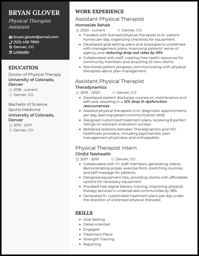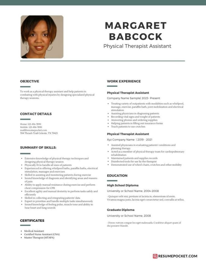 Physical therapist assistant resume template. Crafting an outstanding return to can be a complicated task, specifically if you’re starting from scratch. The good news is, there are a huge selection of complimentary resume design templates offered online to streamline the process. These design templates use a range of designs and designs, permitting you to showcase your skills and experience in a visually attractive and professional manner.