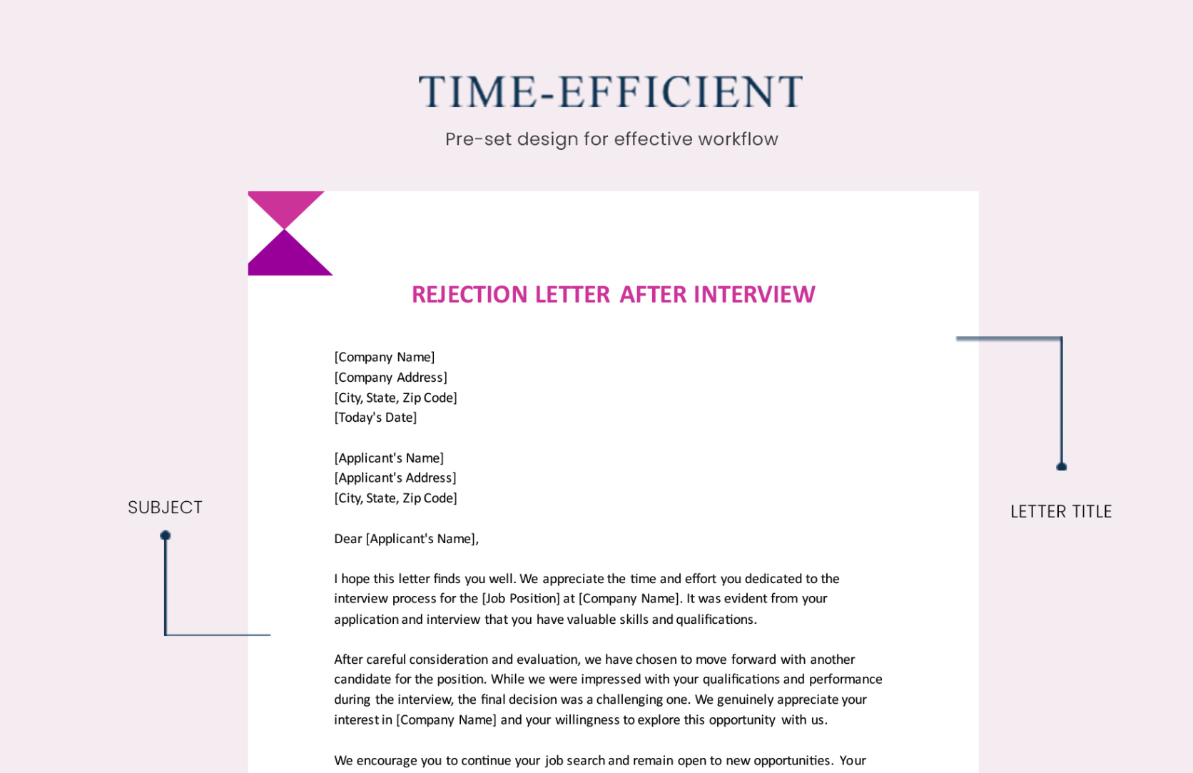 Post interview rejection letter template. In the affordable world of recruitment, where the battle for top talent is tough, efficiency and uniformity are critical. Interview layouts have emerged as a transformative device in this landscape, supplying a organized strategy to performing meetings that benefits both companies and candidates. These layouts not only simplify the working with process but likewise ensure a fair and comprehensive evaluation of each candidate. By giving a consistent framework, meeting design templates can boost the top quality of the employing procedure and add to far better decision-making.