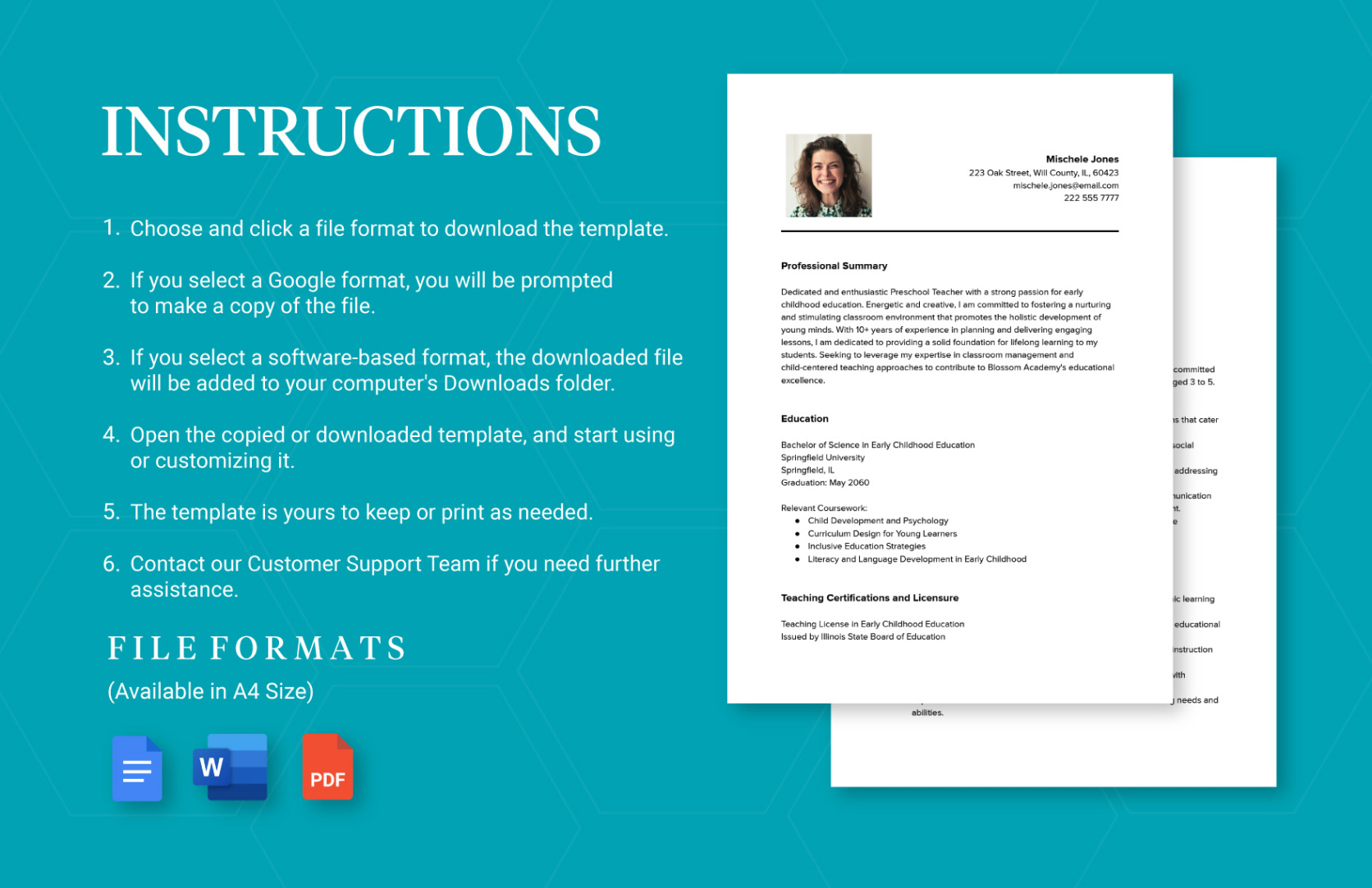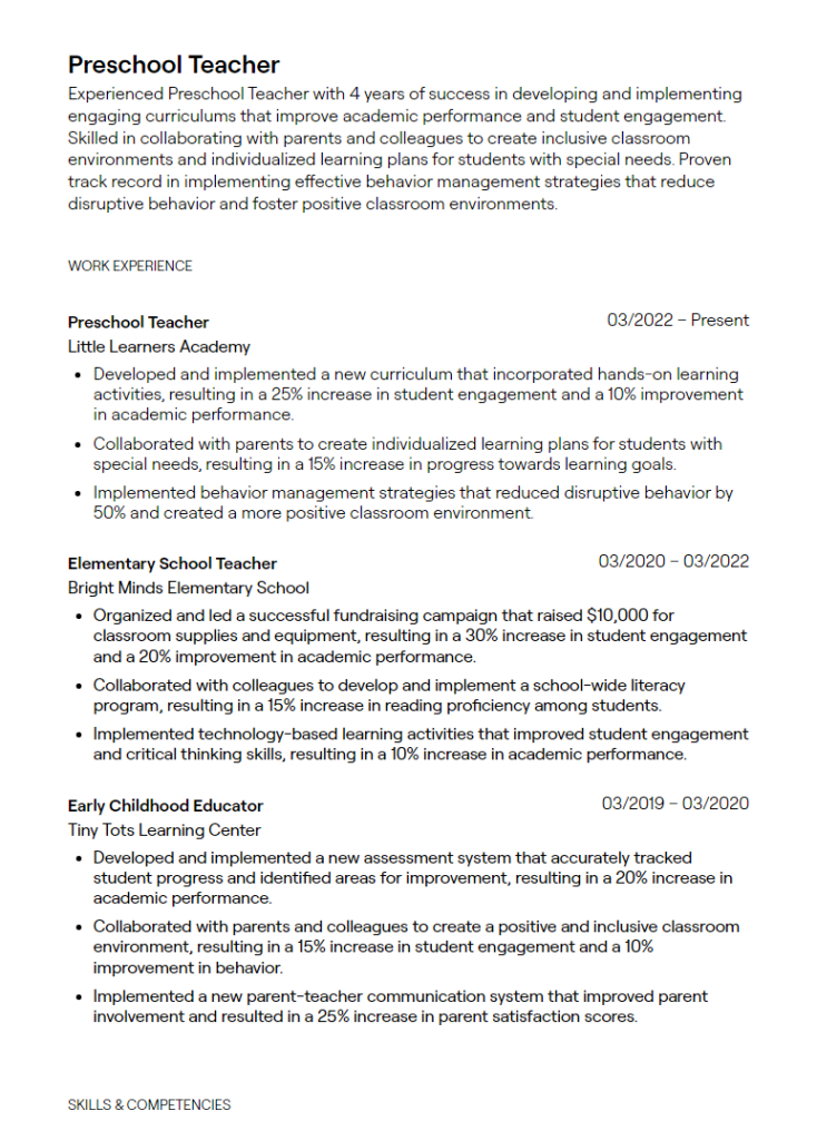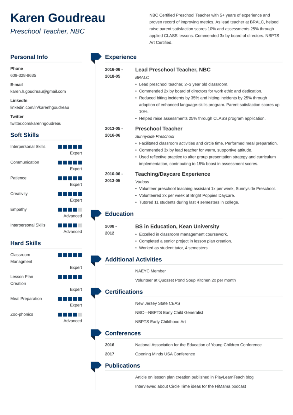 Preschool teacher resume template. Crafting an outstanding return to can be a overwhelming job, especially if you’re going back to square one. Fortunately, there are a variety of complimentary return to layouts offered online to simplify the procedure. These themes provide a selection of designs and layouts, permitting you to showcase your abilities and experience in a aesthetically attractive and professional manner.