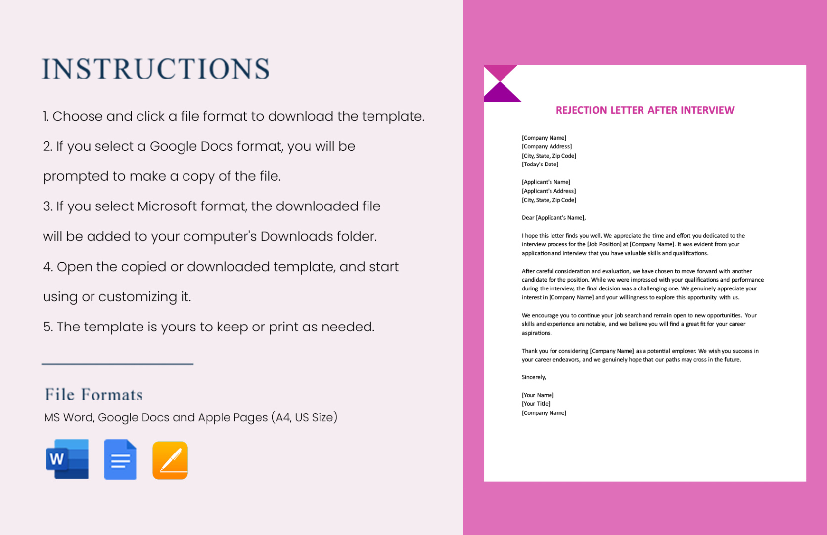 Rejection letter after interview template. Meeting design templates are essential tools in the contemporary hiring landscape, supplying a organized approach to evaluating prospects properly and rather. These design templates provide a constant structure that assists interviewers navigate the complicated procedure of evaluating potential hires. By standardizing inquiries and evaluation criteria, interview layouts ensure that every prospect is assessed on a equal opportunity, minimizing the possibility of bias and making it easier to contrast prospects fairly.