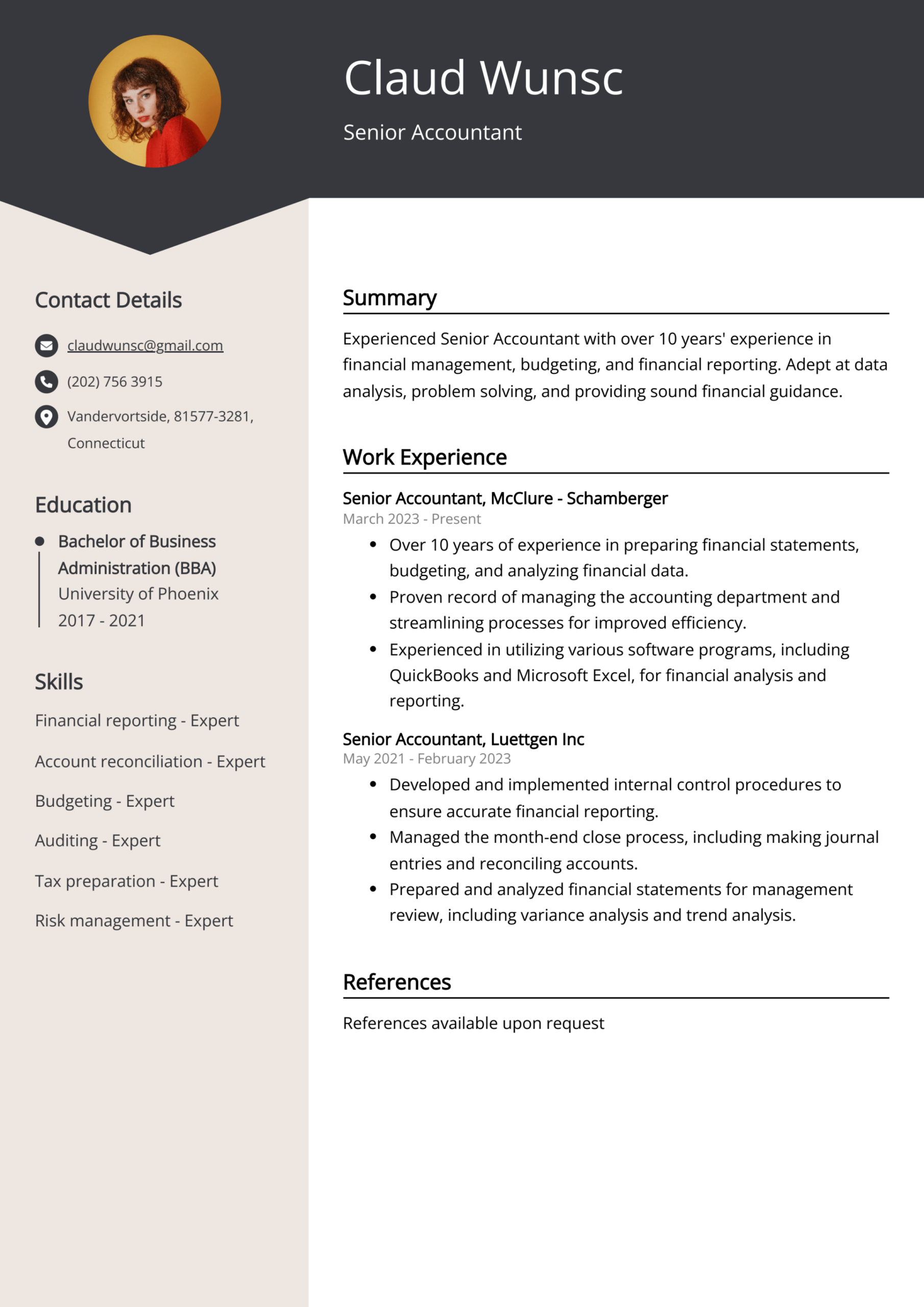 Senior accountant resume template. When it pertains to work searching, a well-crafted resume is vital for making a strong first impression on prospective employers. A return to is a succinct summary of your abilities, experience, and certifications, designed to display your viability for the duty you’re looking for. While creating a return to can be a complicated task, using a resume template can considerably simplify the procedure and assist you stand out from the competition.