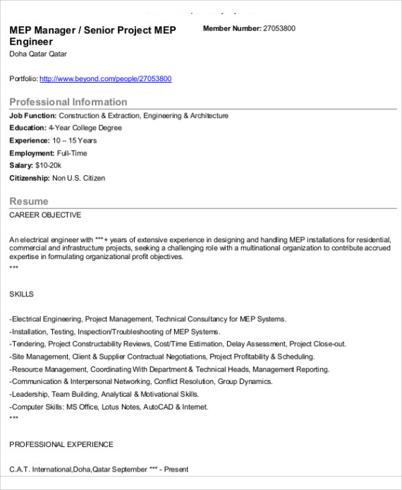 Blank Senior Engineering Manager Resume Template Excel Sample