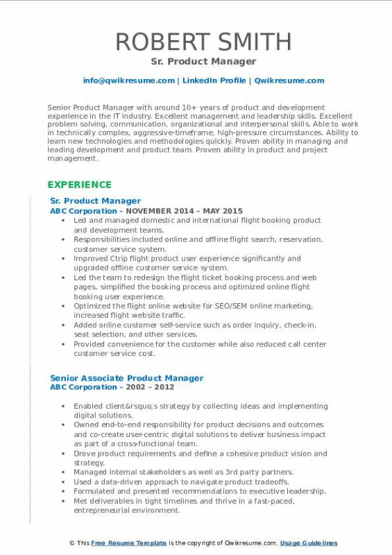 Senior product manager resume template. Crafting an impressive return to can be a daunting task, specifically if you’re going back to square one. Fortunately, there are a plethora of cost-free resume templates offered online to simplify the procedure. These design templates provide a variety of designs and designs, allowing you to display your skills and experience in a aesthetically attractive and specialist manner.