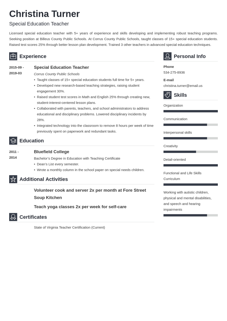 Special education teacher resume template. In the affordable world of job hunting, your resume is commonly the first impression you make on a possible employer. Having a efficient, expert resume is crucial to sticking out from the crowd. One reliable way to ensure your resume stands out of employers is by using a resume template. These pre-designed layouts supply structure, style, and capability, making it much easier for work seekers to produce a sleek document that highlights their abilities and experience.