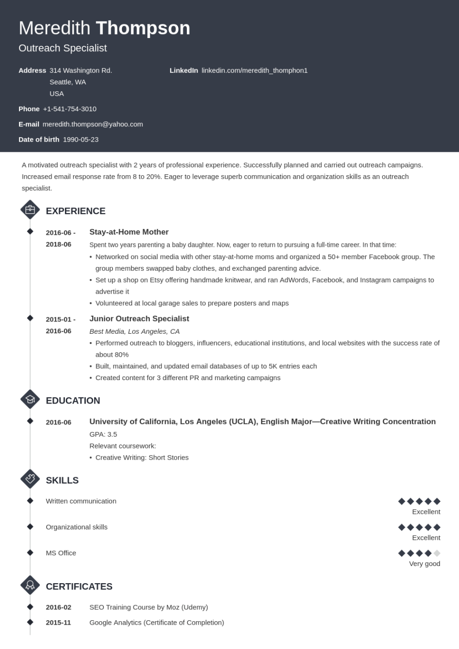 Stay at home mom resume template. Crafting an outstanding resume can be a difficult job, particularly if you’re going back to square one. Fortunately, there are a variety of totally free resume layouts readily available online to streamline the procedure. These design templates offer a selection of designs and designs, permitting you to display your skills and experience in a aesthetically enticing and professional way.