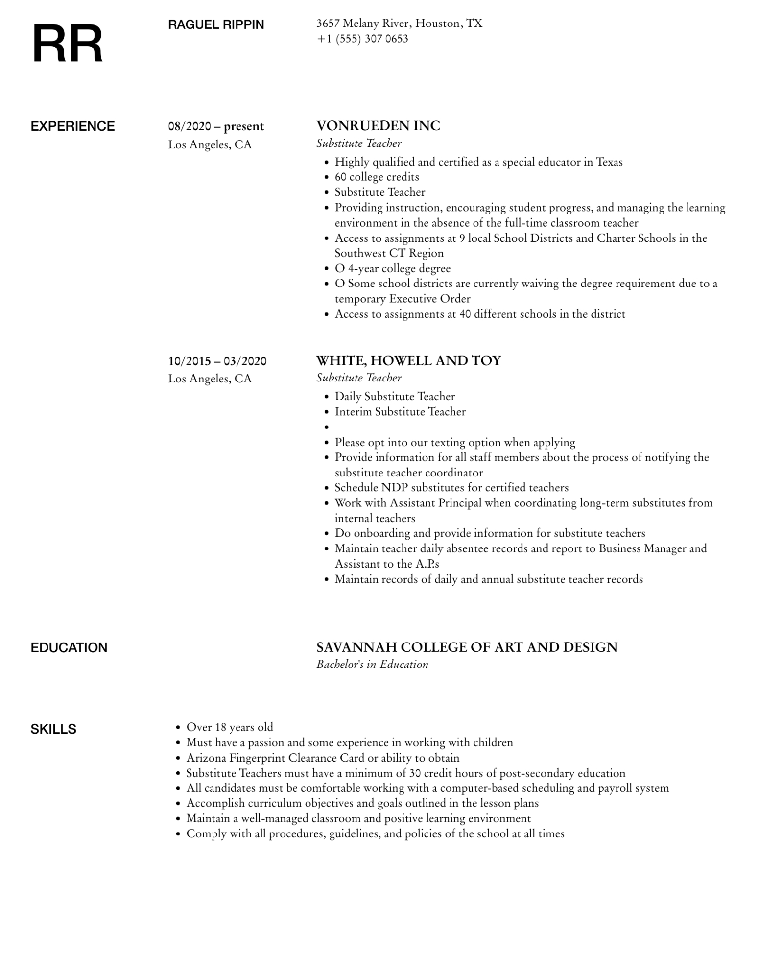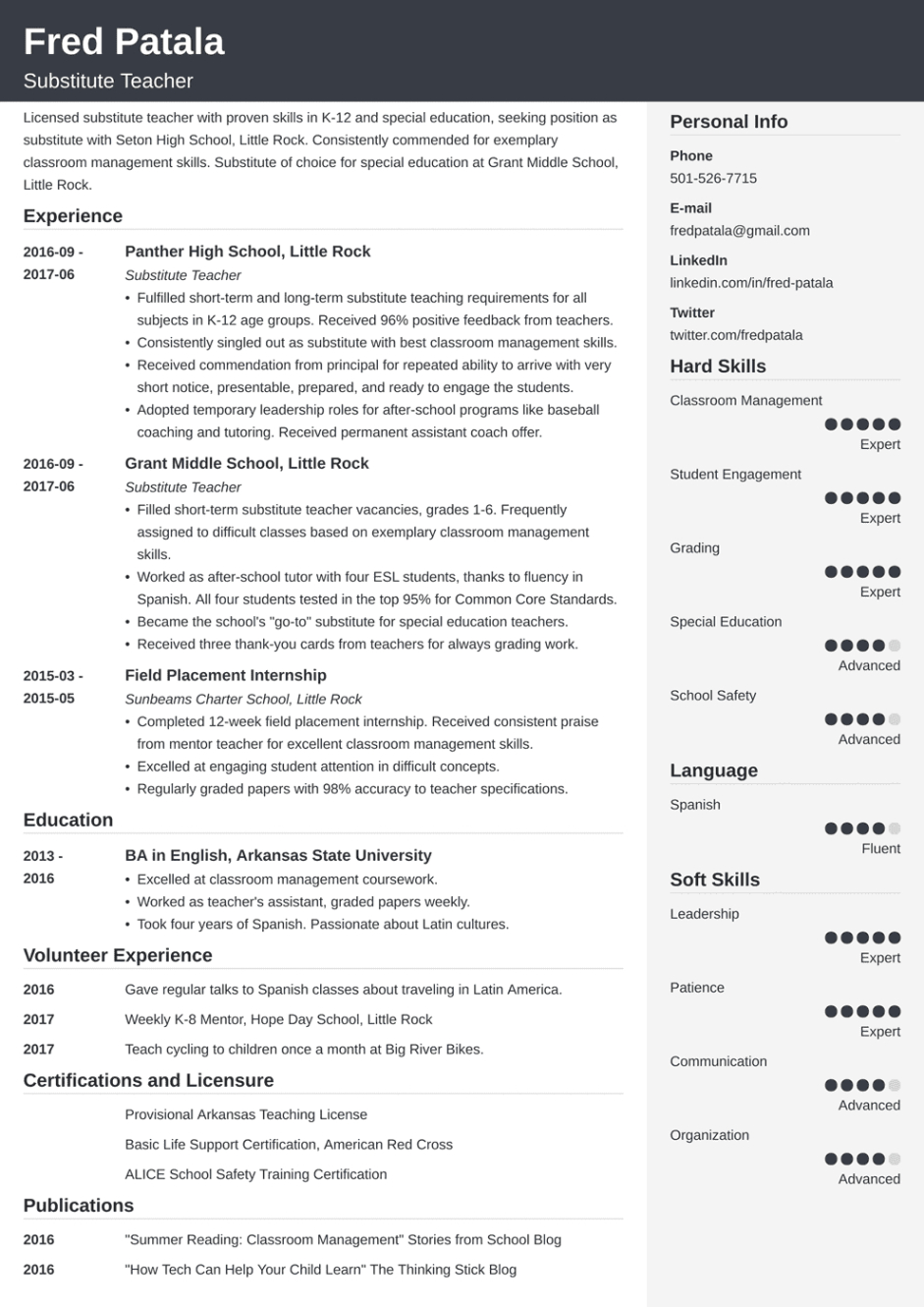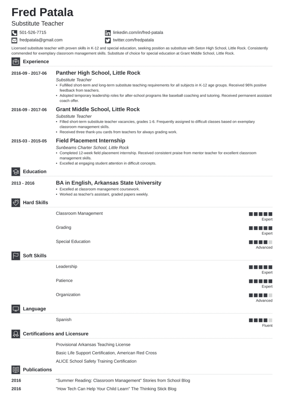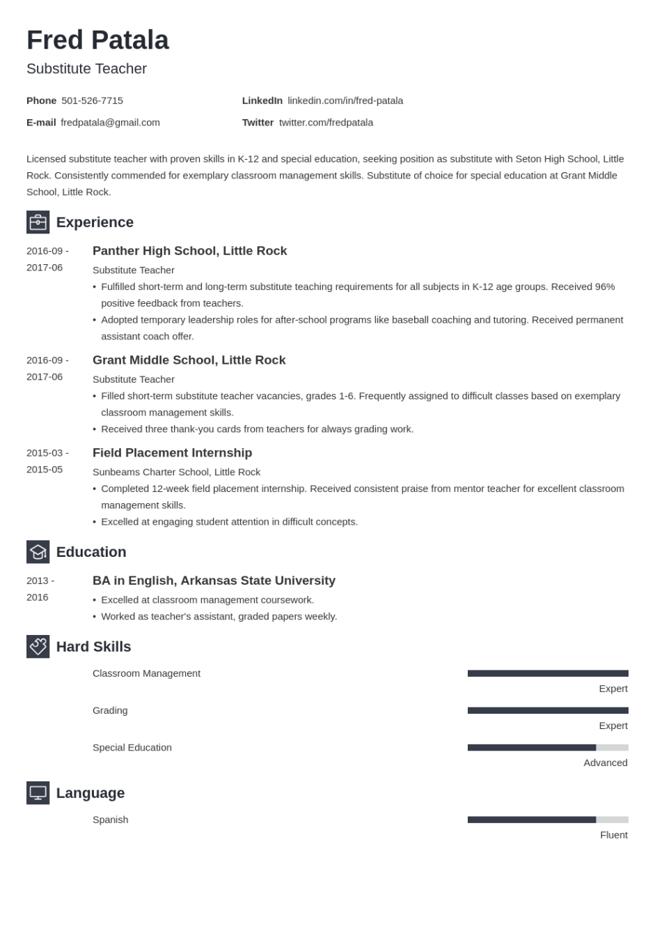 Substitute teacher resume template. In the competitive world of task searching, your return to is usually the impression you make on a potential employer. Having a efficient, specialist resume is essential to sticking out from the group. One efficient way to guarantee your resume stands out of employers is by utilizing a resume template. These pre-designed layouts provide structure, design, and performance, making it easier for task hunters to produce a sleek record that highlights their abilities and experience.