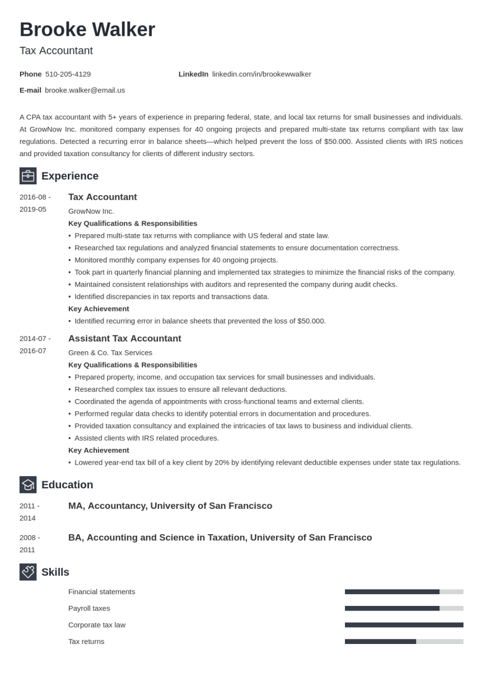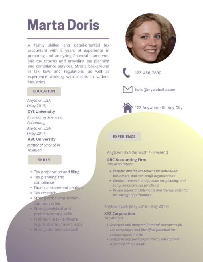 Tax accountant resume template. In the affordable globe of work hunting, your resume is frequently the impression you make on a potential company. Having a efficient, expert return to is vital to standing apart from the crowd. One effective means to guarantee your resume stands out of employers is by utilizing a resume template. These pre-designed styles offer structure, style, and performance, making it less complicated for task applicants to create a polished document that highlights their skills and experience.